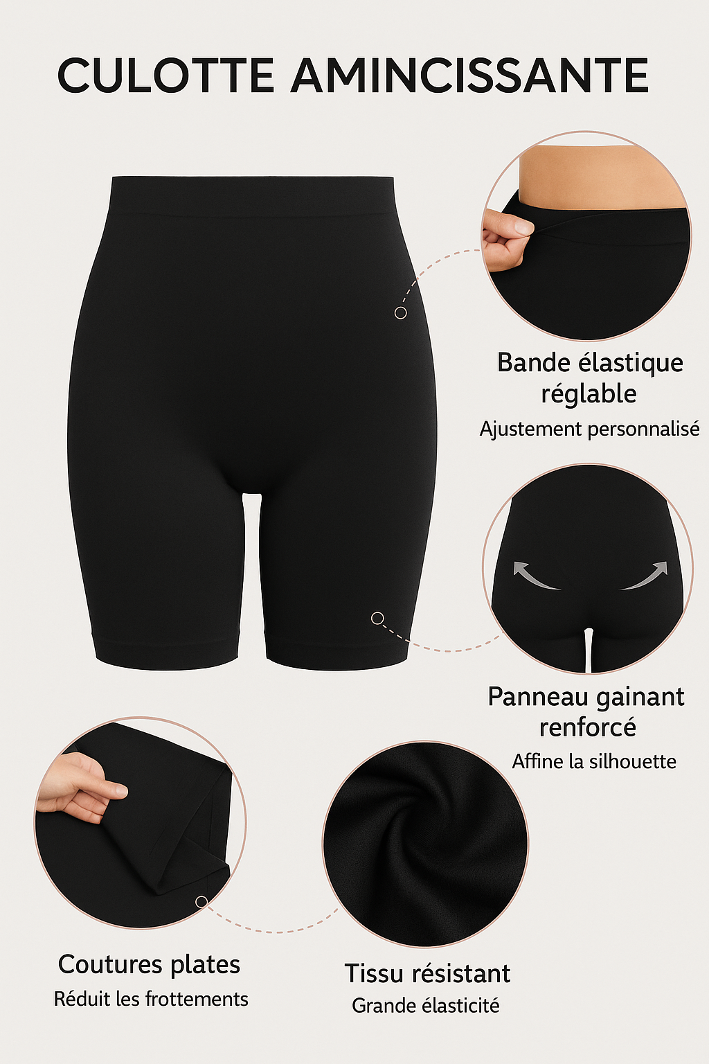 - Lisse la silhouette sans compression excessive